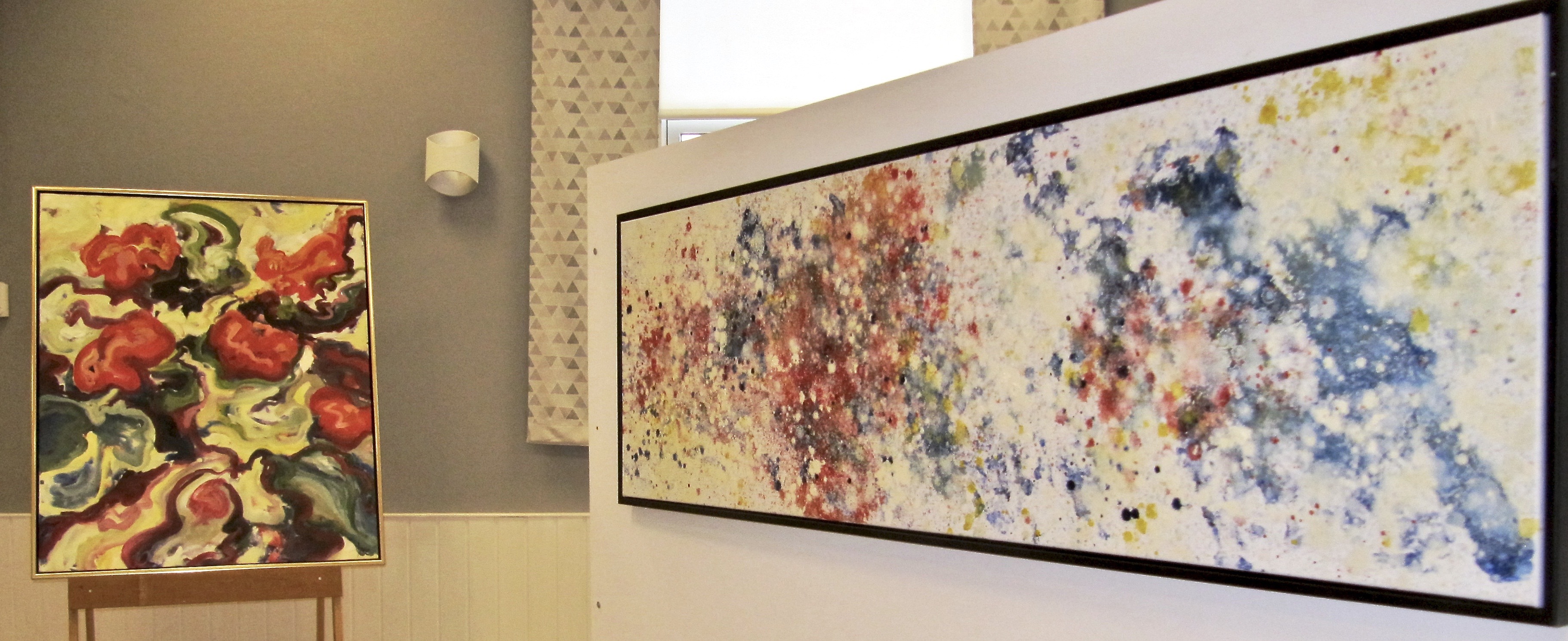 Kunstneren Bente Elisabeth fra Knebel introducerede sine malerier med bl.a. at sige, at hendes inspiration er naturen. Både i Grønland, Norge og Danmark. Alle tre steder har hun boet. De seneste 20 år i Danmark. Hun er født i Tromsø, hvor hun netop har åbnet en udstilling i domkirken. Bente Elisabeth lagde især vægt på, at vi i langt højre grad skal passe på naturen, end vi gør i dag. Det håber hun, at hendes billeder kan inspirere til. Billederne – en mellemting mellem det abstrakte og det naturalistiske – giver stof til eftertanke. De kan både være afdæmpede og voldsomme i farverne. At det er kunst af internationalt format, kan ingen dog være i tvivl om. Flere af gæster blev da også så glade for hendes kunst, at de købte billeder med hjem. Er man i tvivl, kan man også leje hendes billeder for 3-400 kr. om måneden. Beslutter man sig senere for at måske at købe, trækkes lejeudgiften fra på købsprisen.