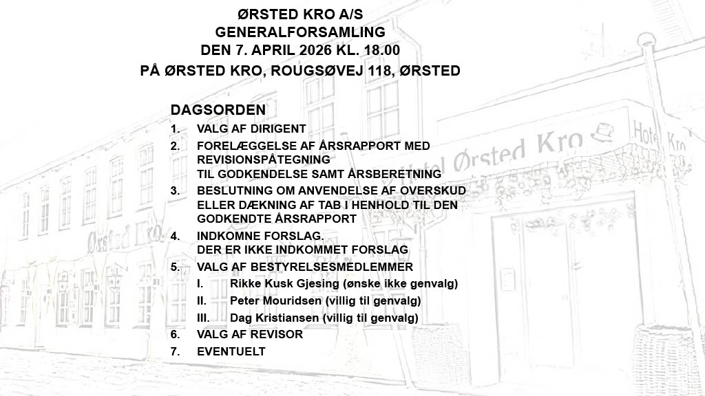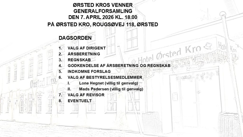 Det er blevet tid til årets generalforsamling i Ørsted Kro A/S og Ørsted Kros Venner