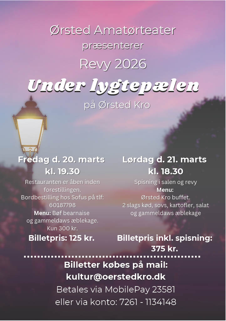 Billetter til revyen bestilles på kultur@ørstedkro.dk
