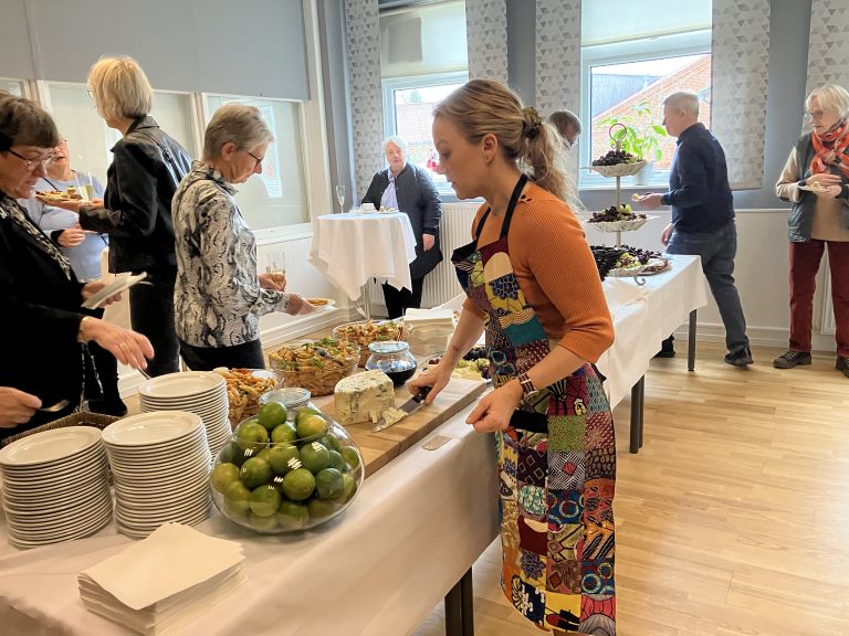 En flot buffet med masser af lækre retter, boblevand, vand, vin, øl og kaffe tog de mange deltagere med storm. Så også for maden i fremtiden lover det godt. En kok er netop blevet fastansat. Og der kom masser af blomster og gaver fra venner og støtter.