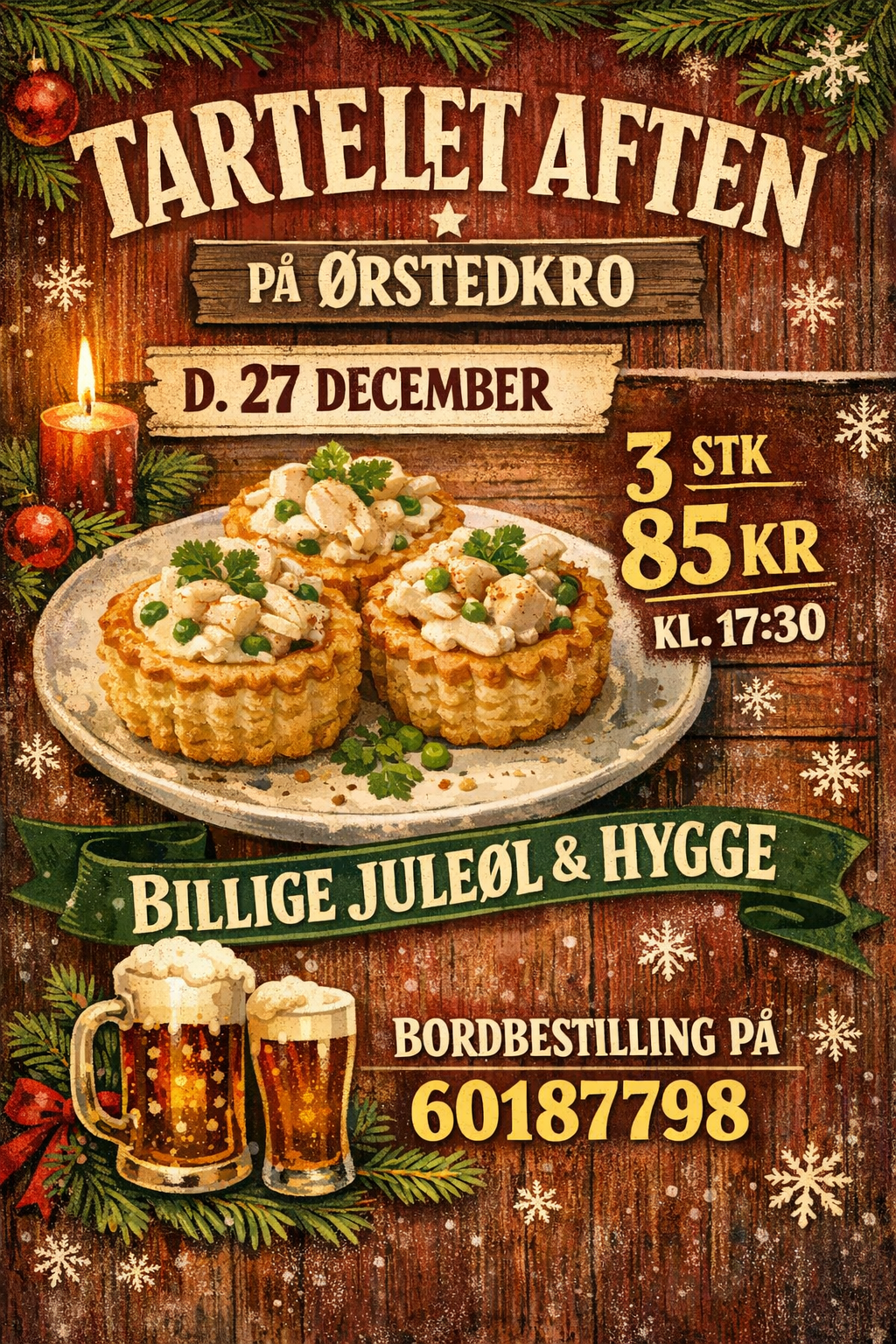 Sofus laver tarteletter til alle d. 27.december – køb 3 for 85,- Derudover sælger han billigt ud af de sidste juleøl. Tag familie og venner under armen til en hyggelig aften på kroen.